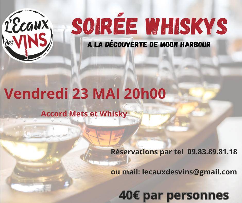 L’Ecaux des Vins vous invite à une soirée dégustation exceptionnelle autour des whiskys Moon Harbour, distillés à Bordeaux. Rendez-vous le vendredi 23 mai à 20h dans notre cave à Criquetot-l’Esneval pour découvrir des whiskys français de caractère, accompagnés d’un accord mets/whisky soigneusement sélectionné. Une expérience sensorielle unique à vivre entre passionnés ou entre amis.